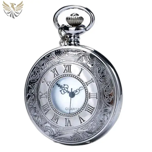 Luksusowy zegarek kieszonkowy kwarcowy srebrny