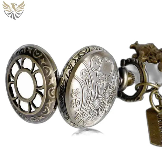 Chiński horoskop kieszonkowy zegarek naszyjnik brąz