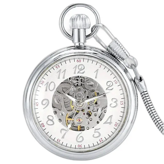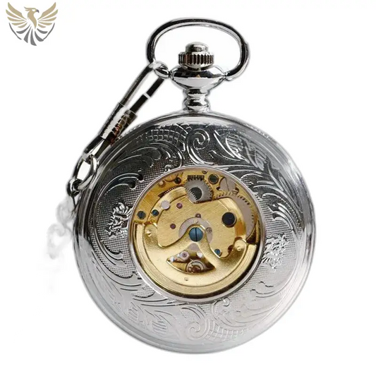 Elegancki srebrny automatyczny zegarek kieszonkowy