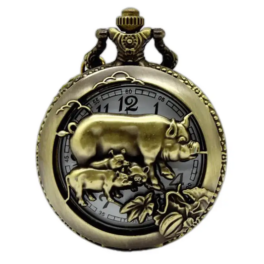 Chiński horoskop kieszonkowy zegarek naszyjnik brąz