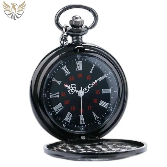 Luksusowy srebrny czarny zegarek kieszonkowy z rzymskimi cyframi